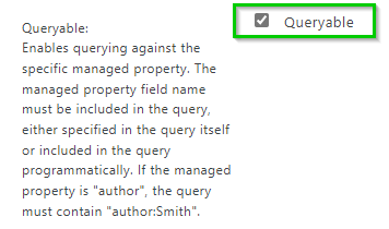 - Once this property has been crawled, the search schema must be configured, and this property mapped to a new managed property